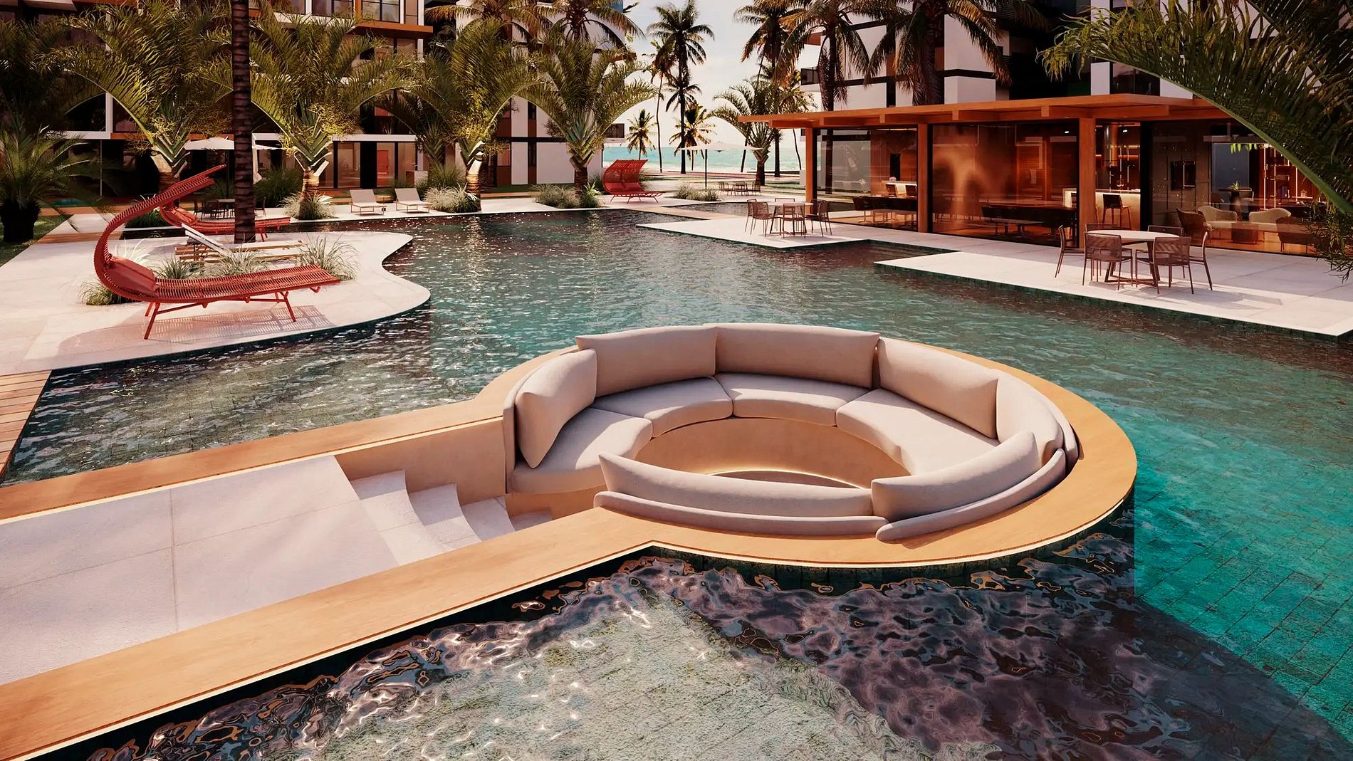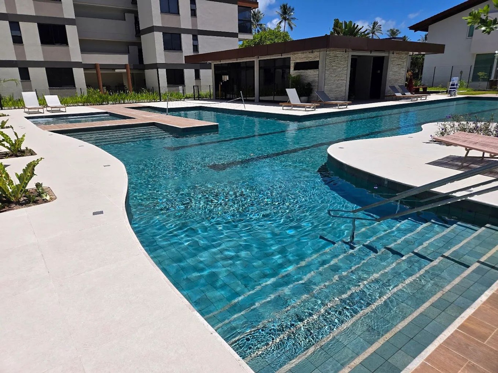 - Cada área de piscina conta com salas e espaços dedicados, como sala de yoga, academia, sala infantil e sala de jogos, garantindo opções de lazer para todas as idades e perfis.