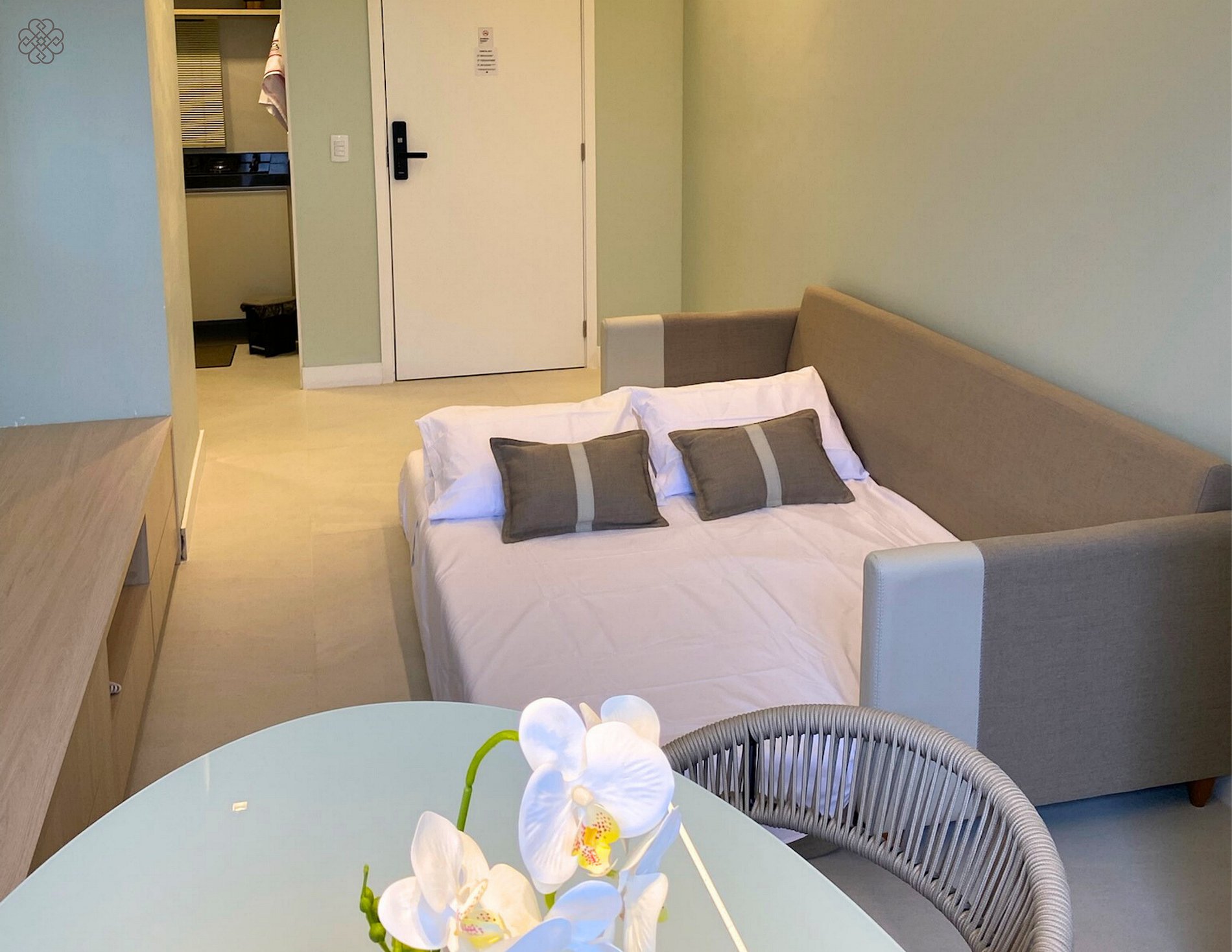Fornecemos roupas de cama e toalhas, e cuidamos para que tudo esteja sempre limpo, organizado e com um cheiro agradável de novo. Cada canto foi pensado para proporcionar uma experiência acolhedora e relaxante.