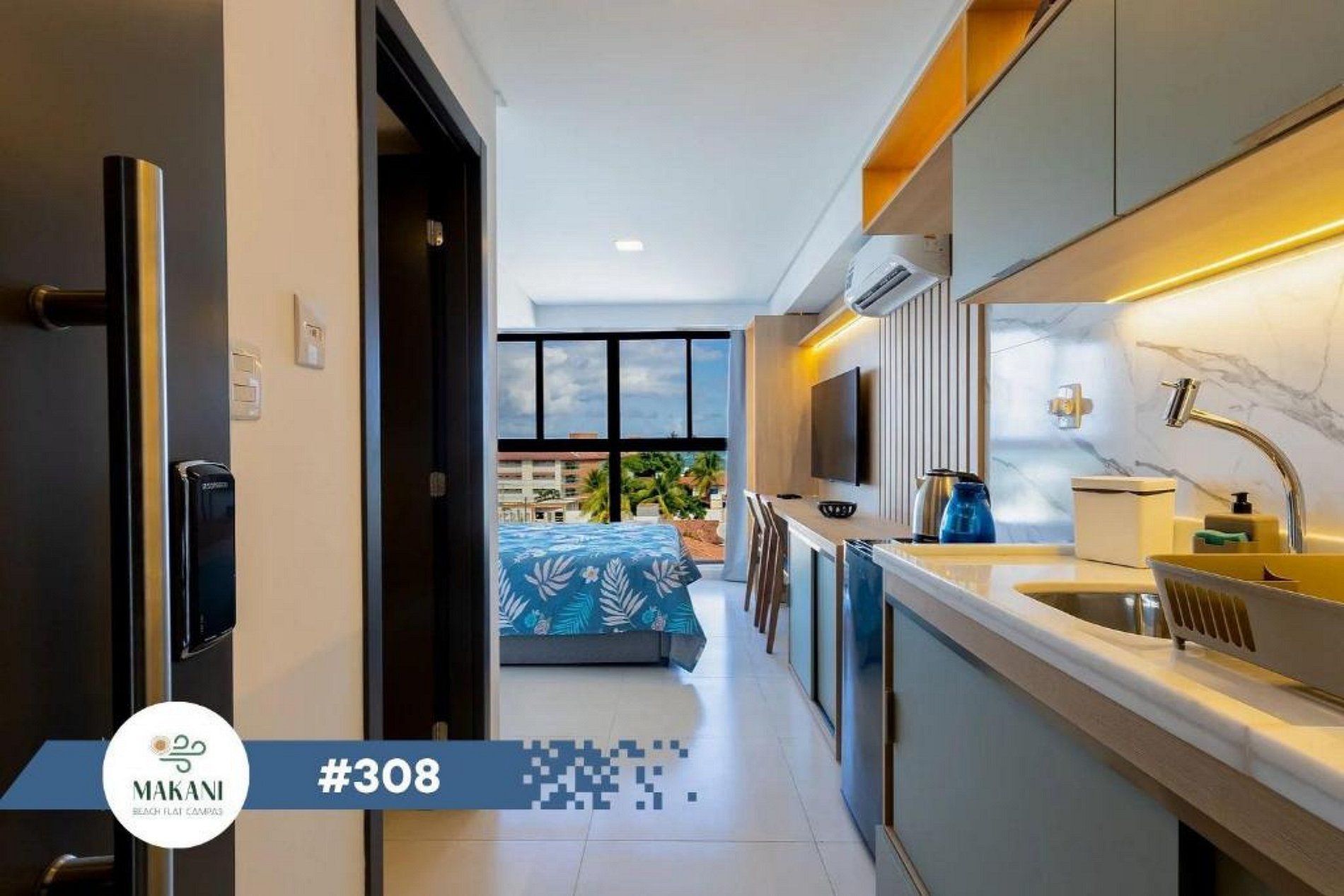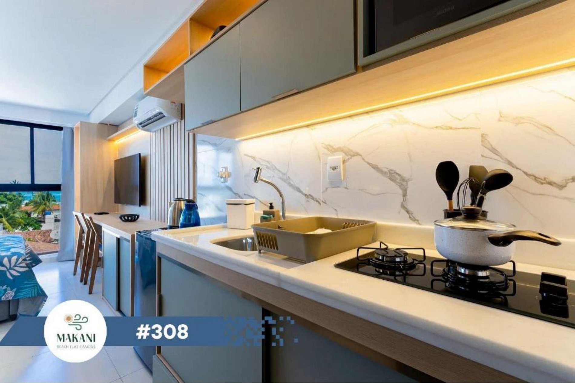 Localizado no condomínio Makani, os hóspedes também podem aproveitar uma excelente estrutura de lazer, com uma piscina incrível, área de churrasqueira, sauna e uma vista impecável para o mar. Um ambiente perfeito para descansar, aproveitar o clima de praia e viver momentos especiais em Carneiros.