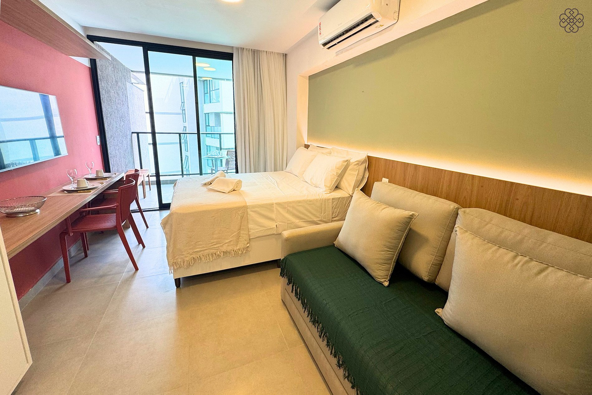 Hospede-se em um apartamento novo e aconchegante no Nomar Carneiros Ecoliving, ideal para até 4 hóspedes e perfeito para quem busca conforto à beira-mar. O espaço conta com cozinha completa equipada, ambiente funcional e agradável, além de uma varanda com vista para a piscina e para o mar, criando o cenário ideal para relaxar. O sofá-cama de casal é super confortável, garantindo uma estadia tranquila tanto para casais quanto para famílias.